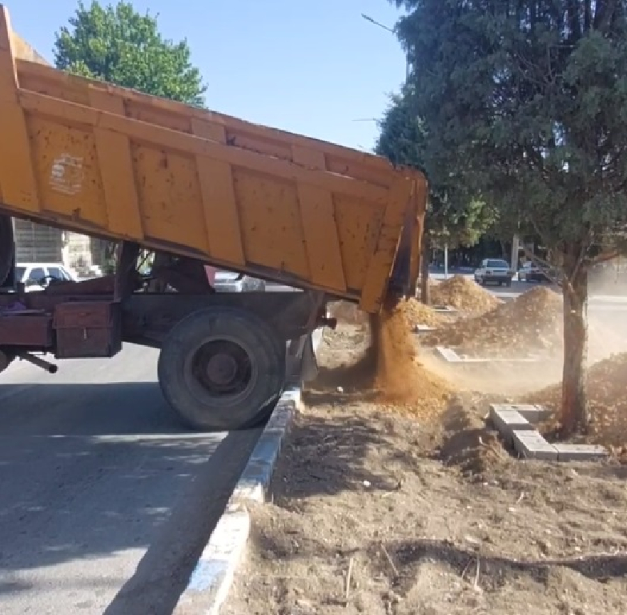 ادامه عملیات زیرسازی رفیوژ وسط بلوار امام خمینی ره در راستای سنگ فرش ، بلوک فرش، نورپردازی و ....