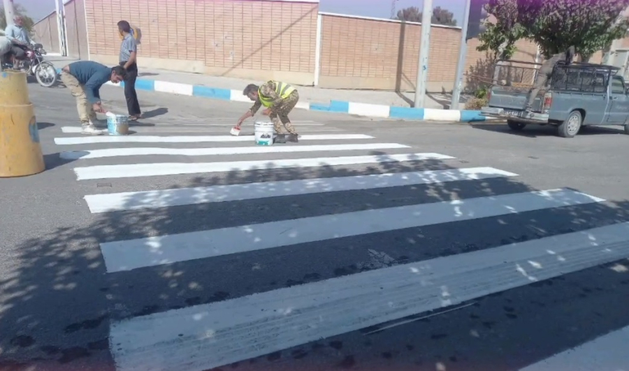 خط کشی گذر گاه های عابر پیاده خیابان های سطح شهر و معابر منتهی به مدارس زیباشهر در راستای بازگشایی مدارس و شروع سال تحصیلی