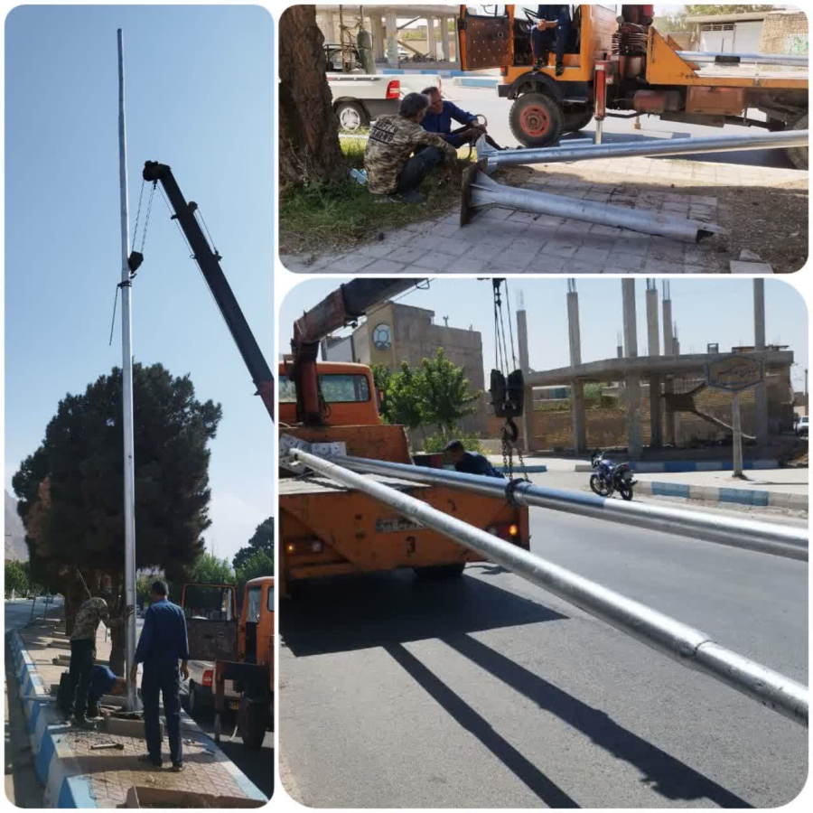تعویض پایه های روشنایی فرسوده با پایه های جدید بلوار امام خمینی(ره) زیباشهر