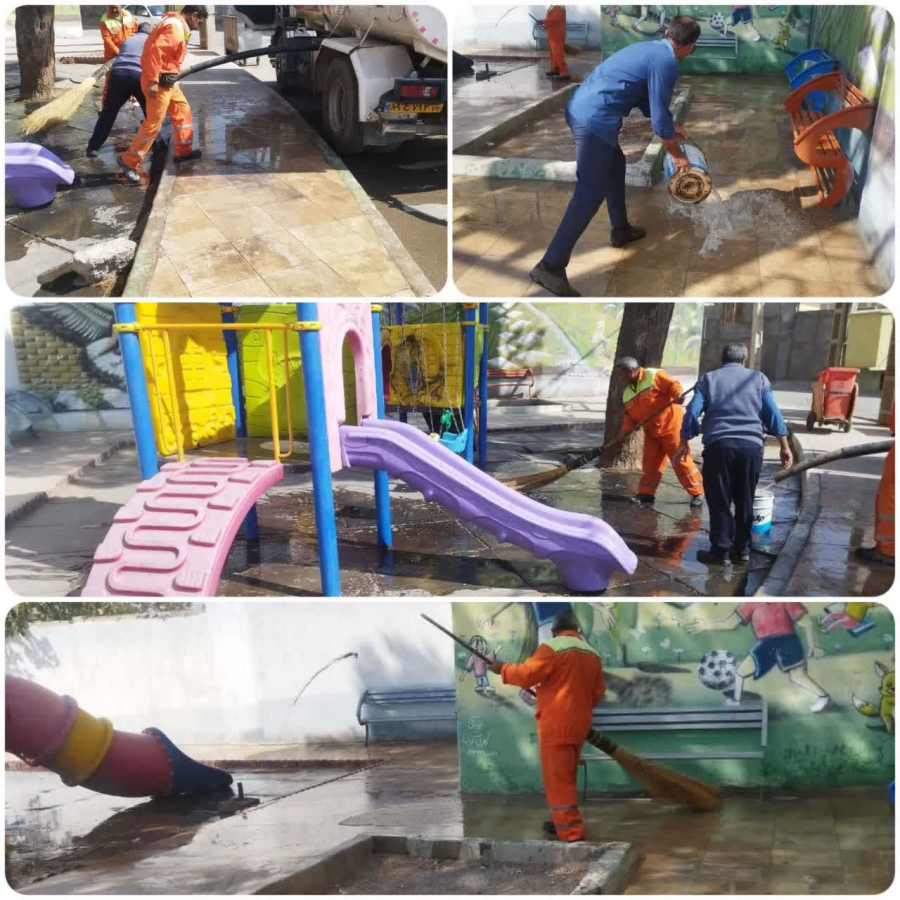 تعمیر ، شستشو و ضدعفونی پارکهای بازی کودکان
