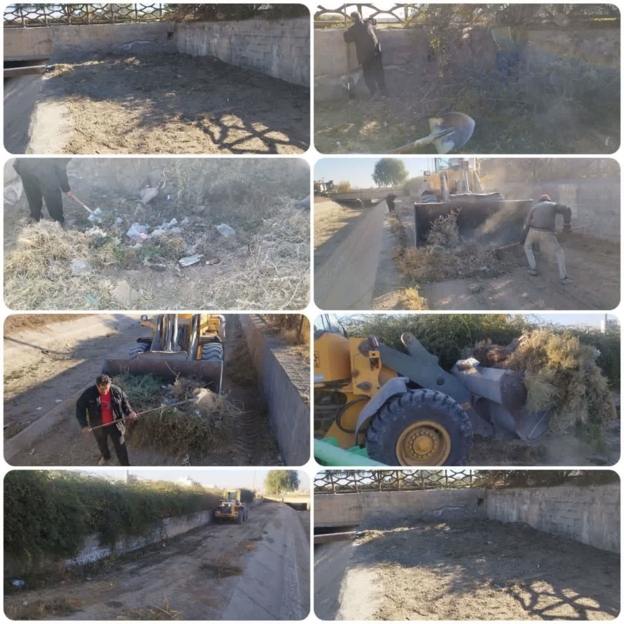 پاکسازی حاشیه کانال آبرسانی و جوی های سطح شهر