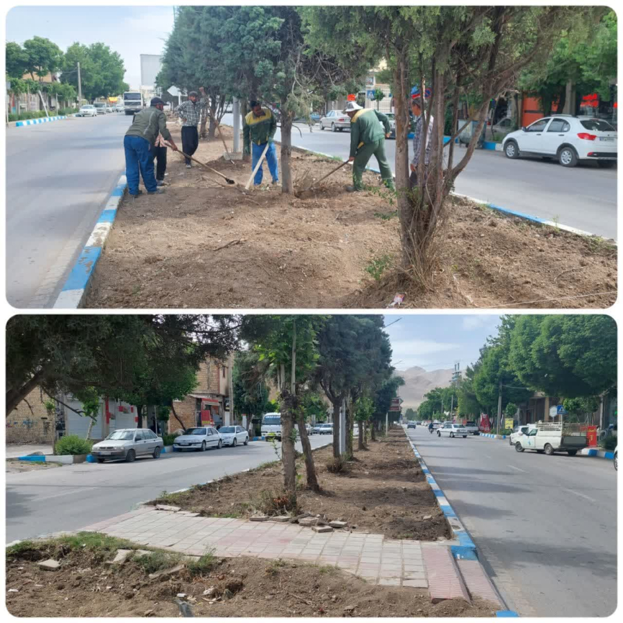 عملیات زیر سازی اصلاح رفیوژ وسط بلوار امام خمینی(ره)
