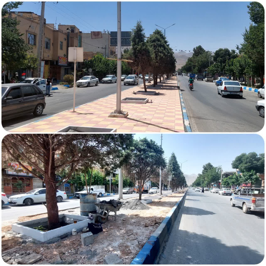 تداوم عملیات سنگ فرش و بلوک فرش نمودن رفیوژ وسط بلوار امام خمینی(ره)